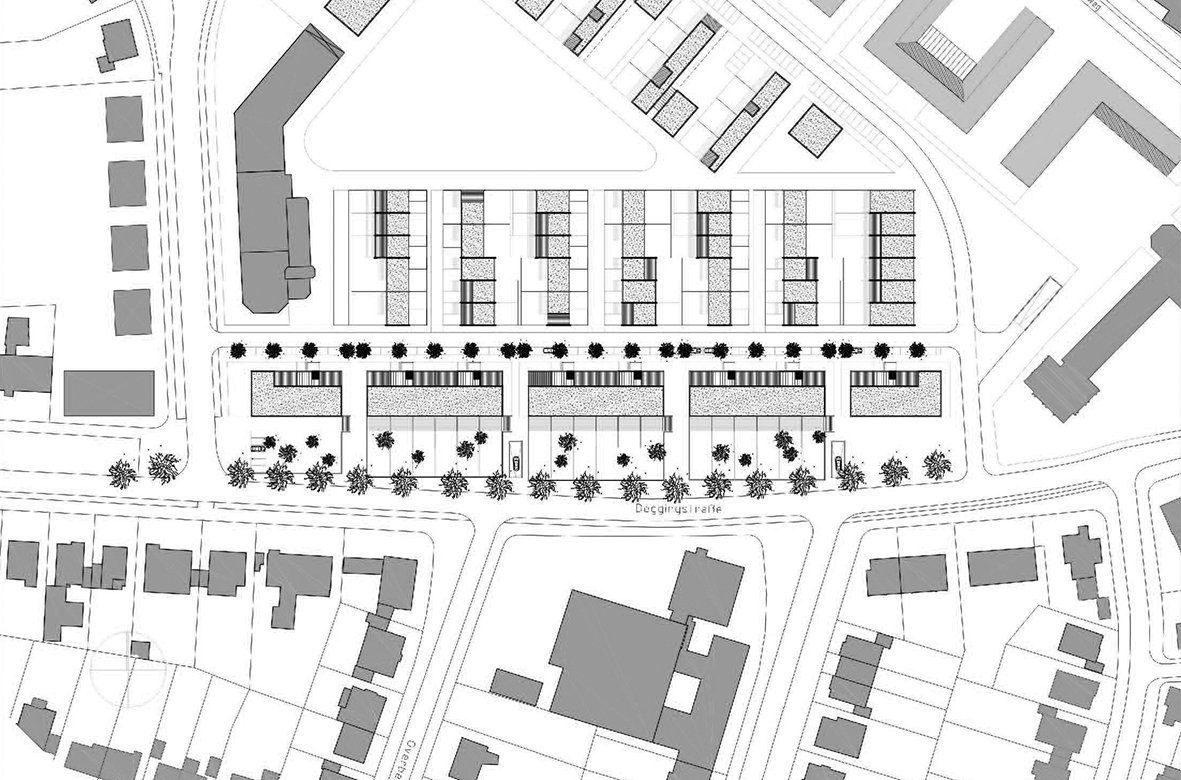 Zur Erschließung des Geländes wird die Karl-von-Zahn-Straße auf dem Planungsgebiet weitergeführt und an der Grenze des Grundstückes zur Deggingstraße umgeleitet. Dadurch wird das Gelände in zwei Bereiche gegliedert, die der Umgebung entsprechend unterschiedlich bebaut werden.