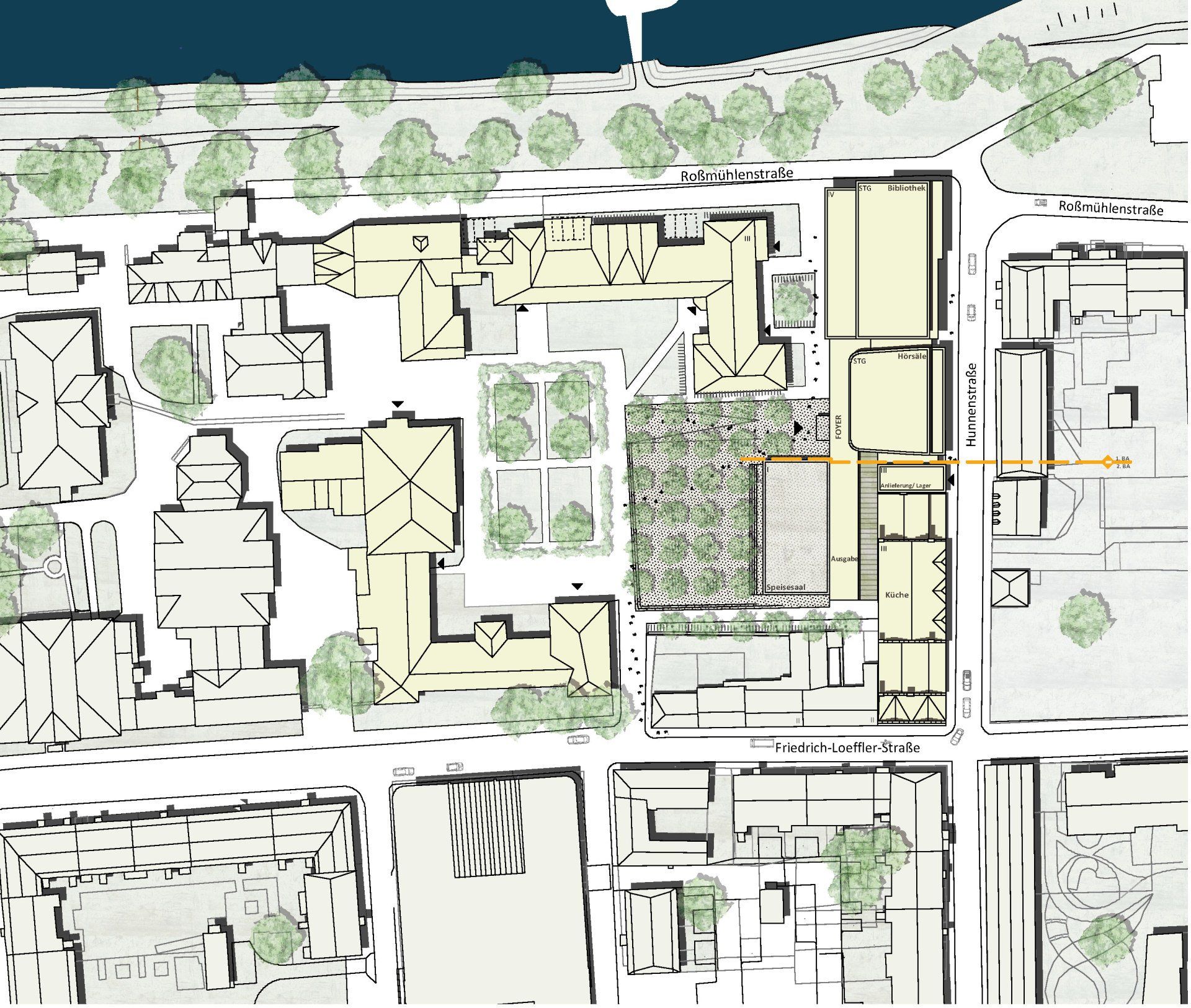 Die Universität Greifswald plant die Erweiterung der geistes- und sozialwissenschaftlichen Fakultäten am Standort Löfflerstrasse. In zwei Bauabschnitten soll das denkmalgeschützte Ensemble der ehemaligen Kliniken um eine Fachbibliothek, drei Hörsäle und eine Mensa mit Cafeteria ergänzt werden.
