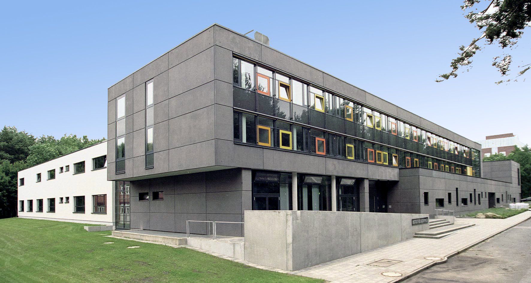 Die funktionale Struktur des Instituts findet ihren Ausdruck in der Gliederung des Gebäudes in drei eigenständige Bauteile -Labore, Praktikum und Verwaltung- mit einer unterschiedlichen Fassadengestaltung. Die Eingangshalle ist gleichzeitig Bindeglied und Kommunikationsort des gesamtes Instituts.
