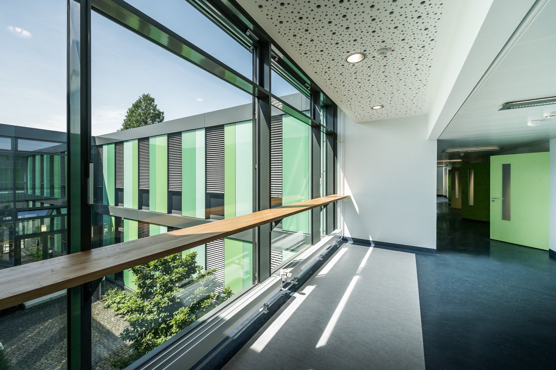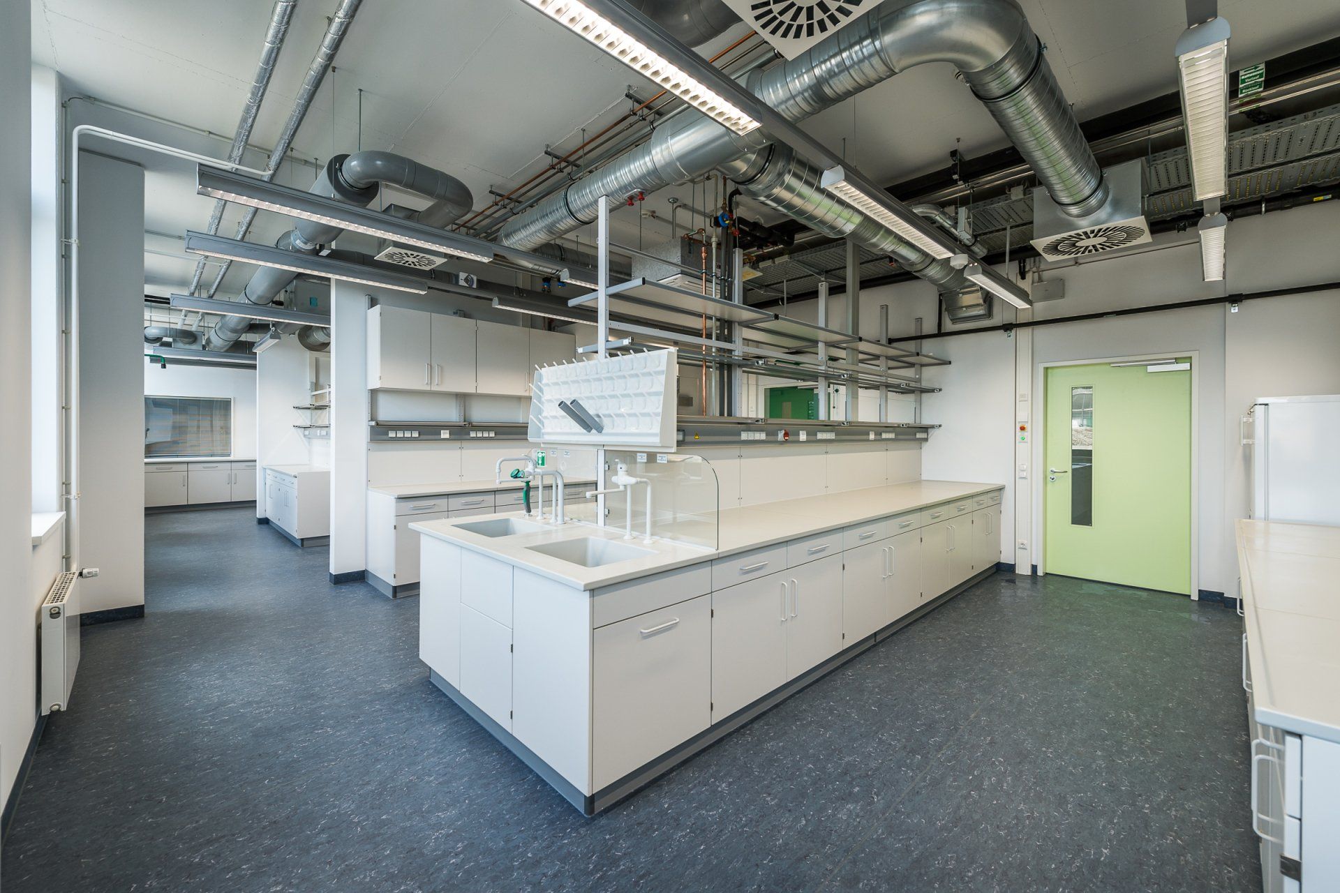 Der spielerische Umgang mit der Farbe Grün zieht sich bis in die Gestaltung der Labore. Die Abkehr vom „Herrenhäuser Gelb“ und die selbstbewusste Markierung des „grünen Labors“ steht für das Selbstverständnis einer jungen Forschergeneration auf der Suche nach neuen Erkenntnissen. Die gläserne Haut spielt mit den allgegenwärtigen Gewächshäusern der grünen Fakultät und steht gleichermaßen für den wissenschaftlichen Anspruch der Universität in der Zukunft.