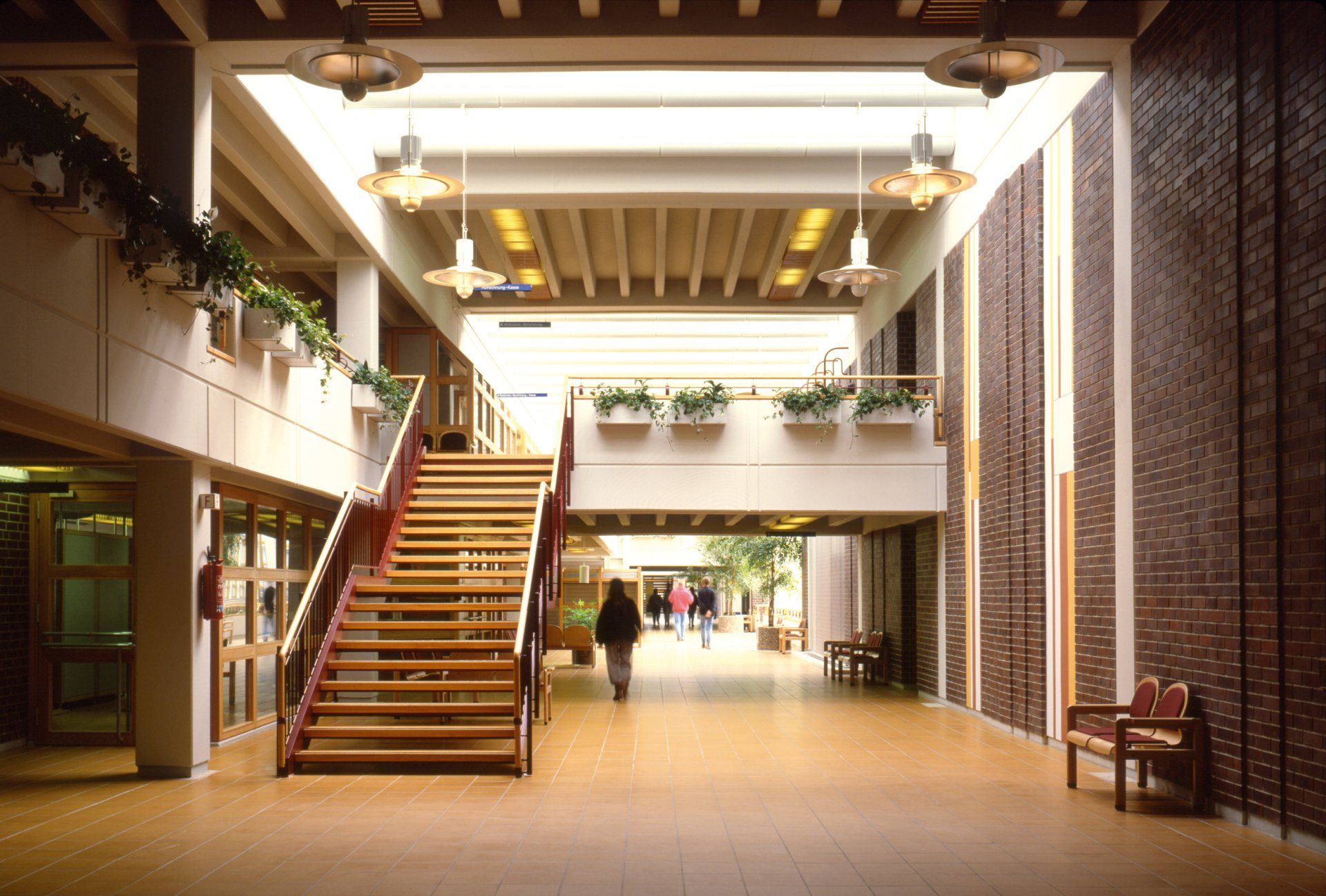 Zwischen zwei Magistralen befindet sich der zentrale primäre Klinikbereich mit Notfallmedizin, OP-Abteilung, Ambulanzen sowie Servicefunktionen. Die einzelnen Abteilungen der Funktionsbereiche sind durch zahlreiche begrünte Lichthöfe aufgelockert, an denen die Büro- und Aufenthaltsräume, Untersuchungsräume der Fachkliniken sowie die klinischen Labore liegen. Durch Flure begrenzt – im Grundriss ablesbar – können sie ihre Identität wahren, ohne isolierte Einzelbauten zu sein.