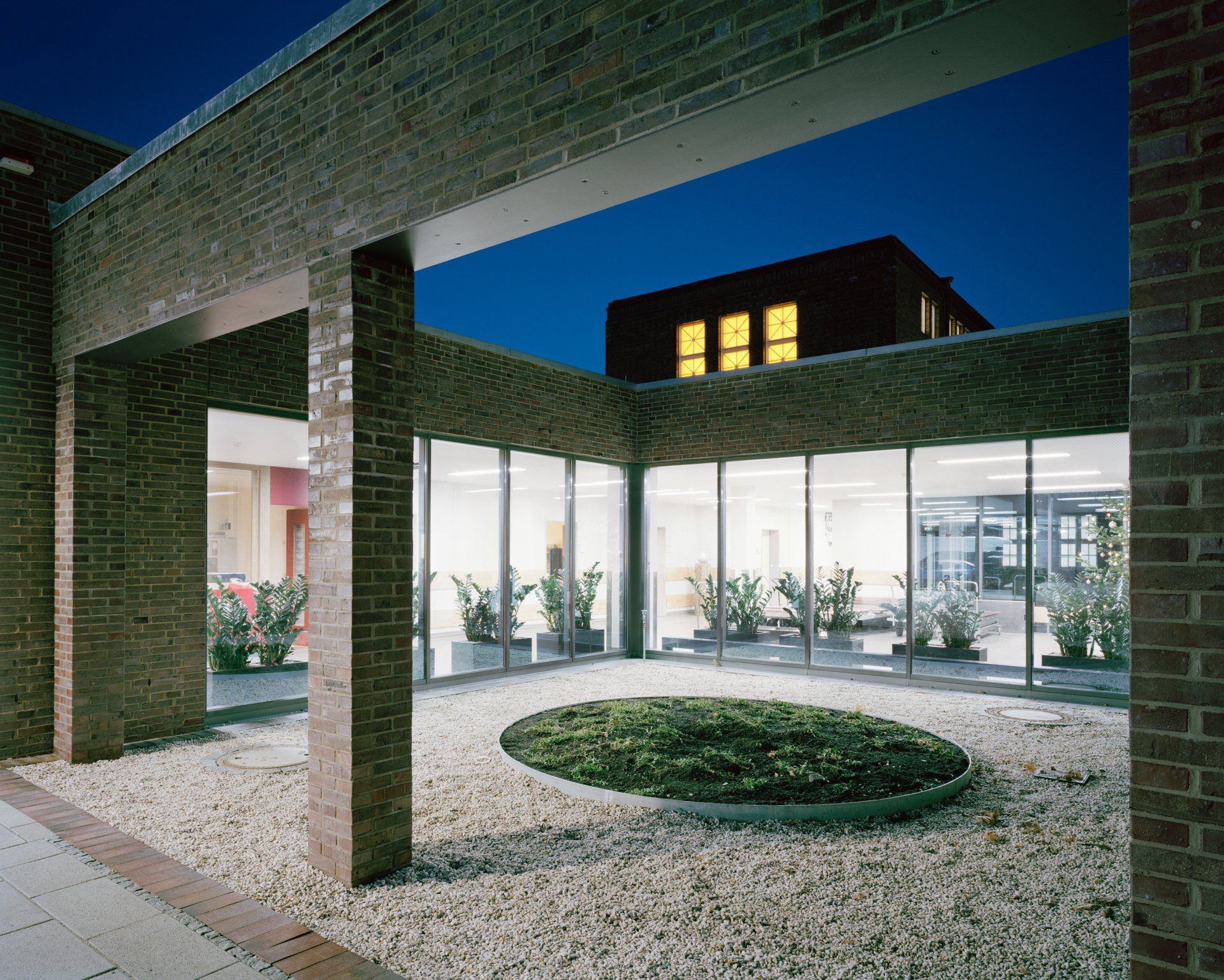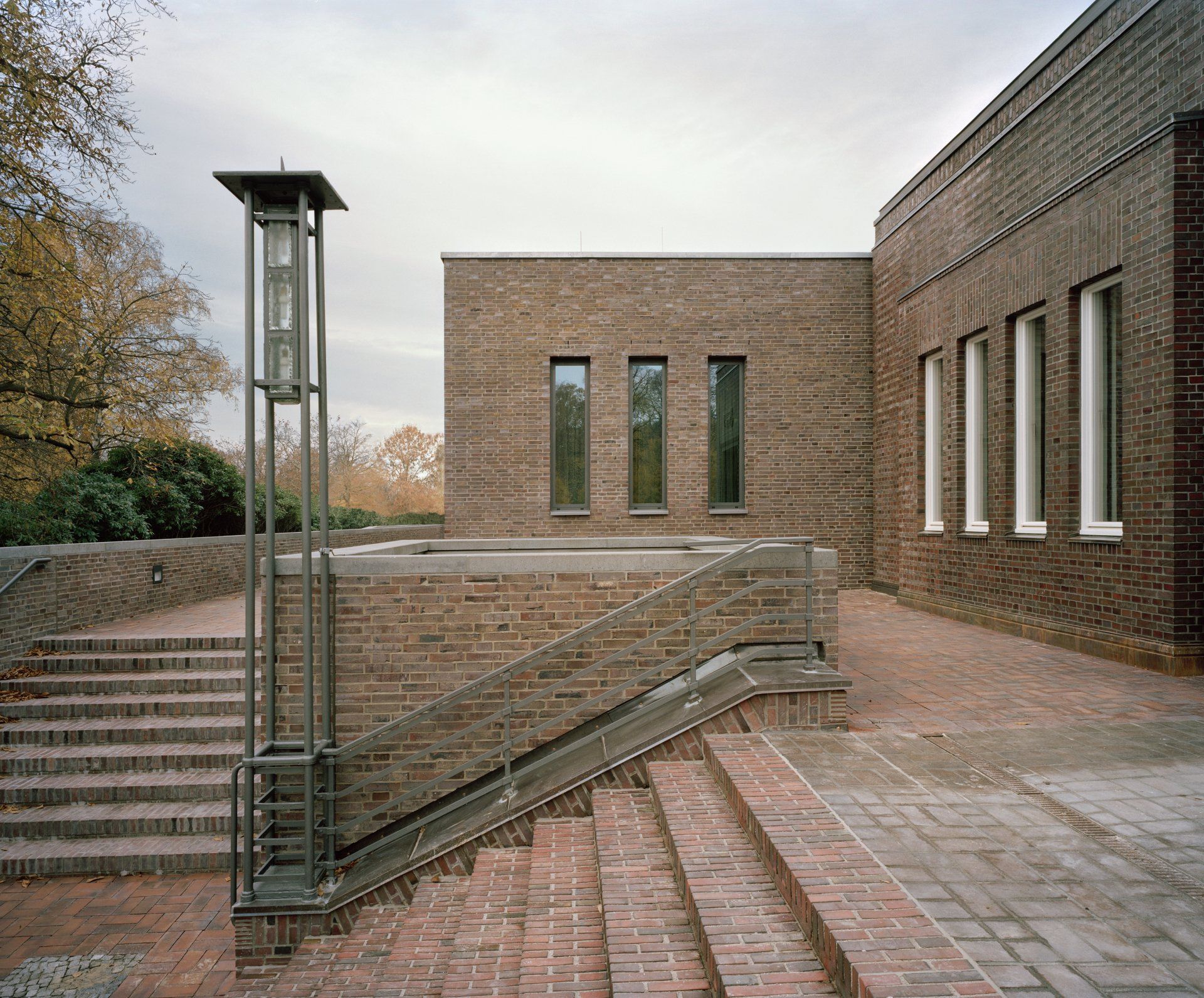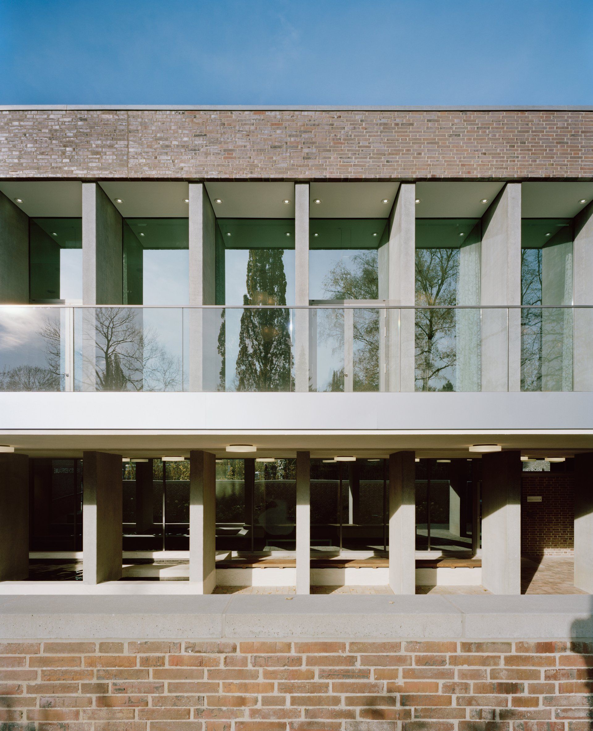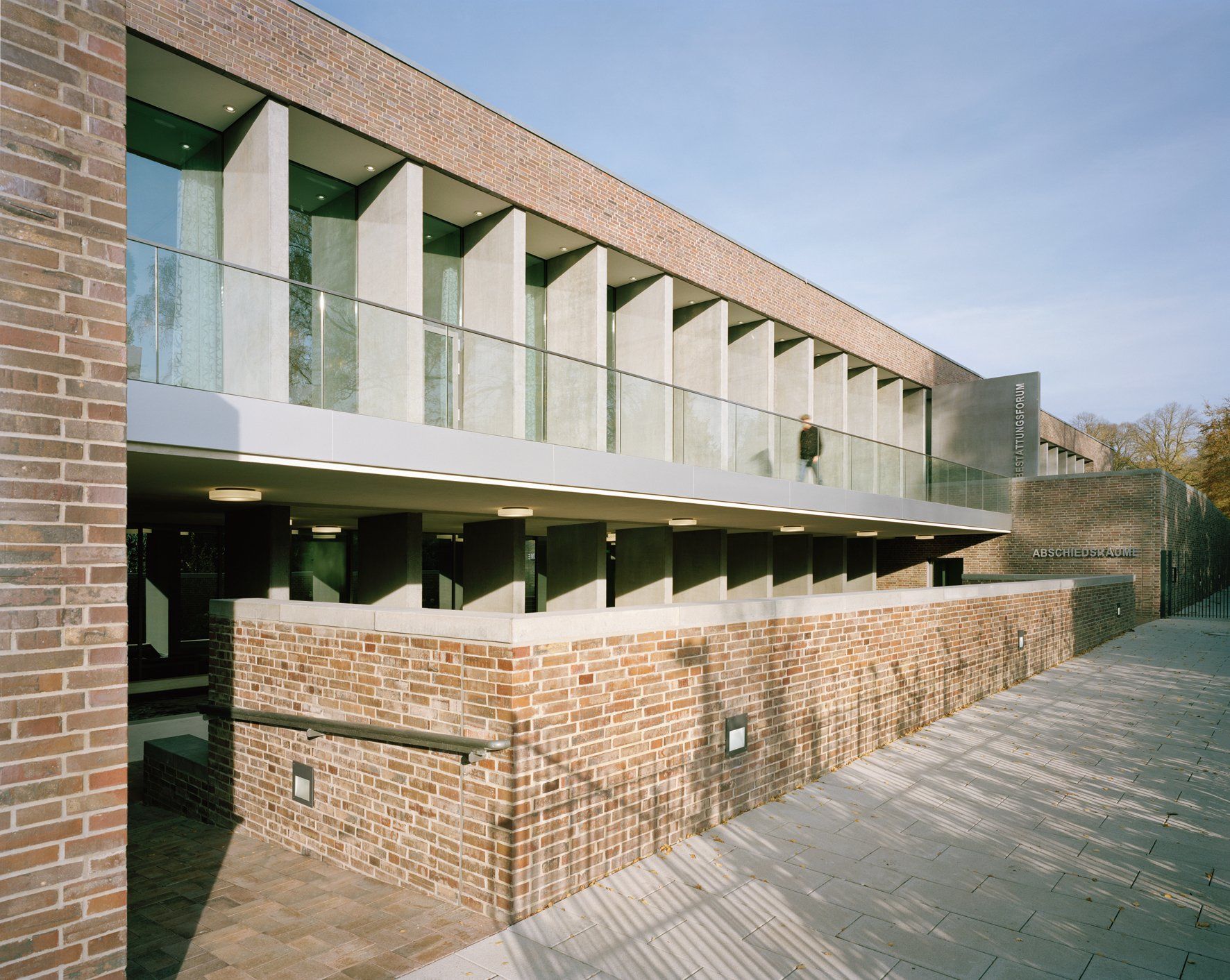 Das Krematorium Ohlsdorf in Hamburg, ein Fritz-Schumacher-Bau von 1937, wurde unter Berücksichtigung der Vorgaben des Denkmalschutzes durch zwei Gebäudeflügel, die bis an die Fuhlsbüttler Straße reichen, erweitert. Die Axialität des Gebäudekomplexes und die Symmetrie des Altbaus werden durch die Anbauten und die Gestaltung des Innenhofs, in Anlehnung an historische Pläne, betont. Der Südflügel, in dem auf zwei Ebenen die öffentlichen Nutzungen des Bestattungsforums untergebracht sind, tritt sowohl durch seine Lage als auch durch seine Höhe und geradlinige, ruhige Gestaltung hinter den expressiven Altbau, dessen Erscheinung auf der Friedhofseite unverändert bestehen bleibt. Der kubische Neubau öffnet sich über das gesamte Gebäude zum Friedhofspark. Diese Öffnung erfährt einerseits durch tiefe Betonschotten eine rhythmische Gliederung und angemessene Transparenz, verhindert jedoch die direkte Einsicht von den angrenzenden Wegen. Der Nordflügel ordnet sich zurückhaltend in das Ensemble der Anlage ein und schließt den Hof, in dem die Verstorbenen angeliefert werden ab.