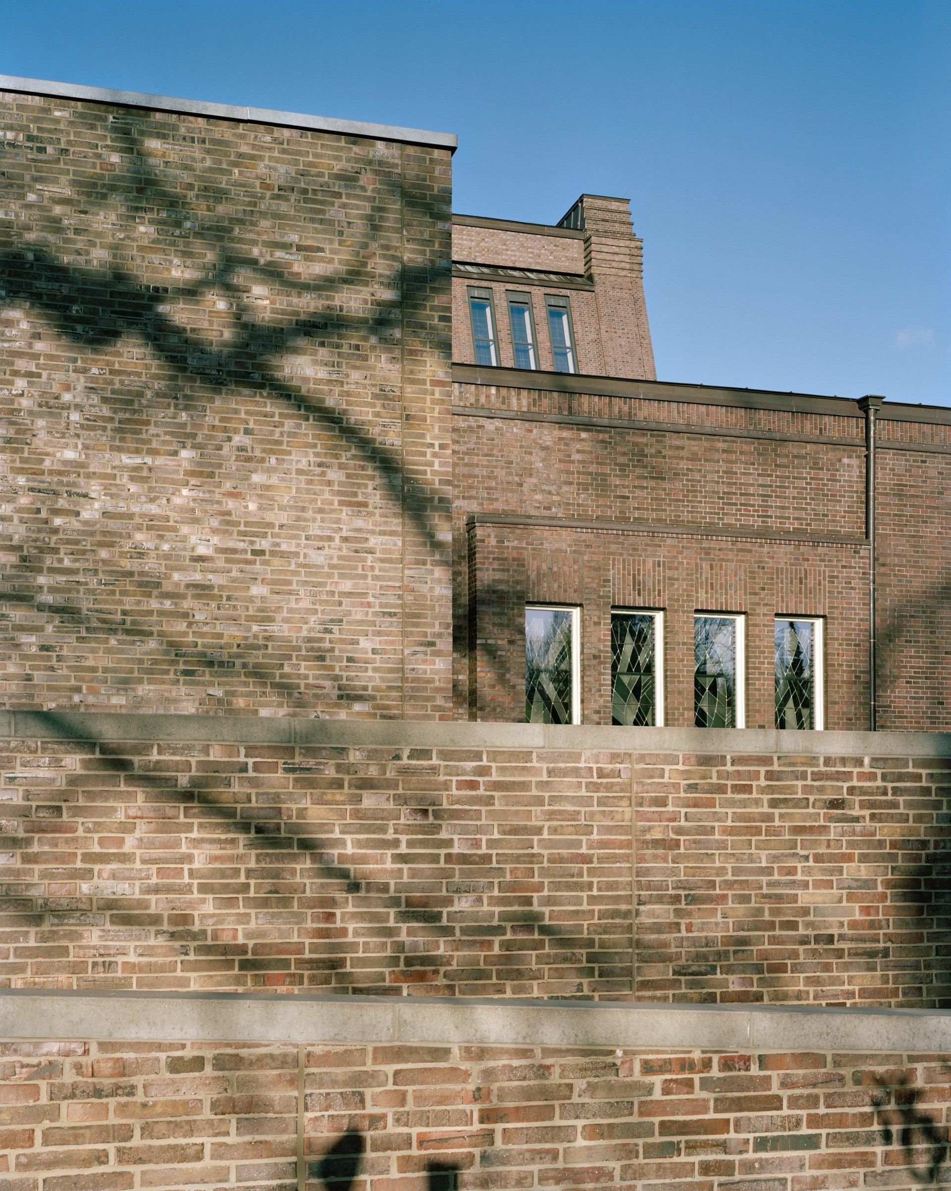 Der Neubau strebt ein Gleichgewicht zwischen Eigenständigkeit und angepasster Ergänzung an, wobei der denkmalwürdige Altbau aufgrund seiner architektonischen Haltung seine Dominanz beibehält. Dies wird durch die einfachen, klar gestalteten und funktionalen Baukörper erreicht, die mit wenigen Gestaltungselementen die sehr unterschiedlichen Nutzungen zu einer Einheit zusammenführen.