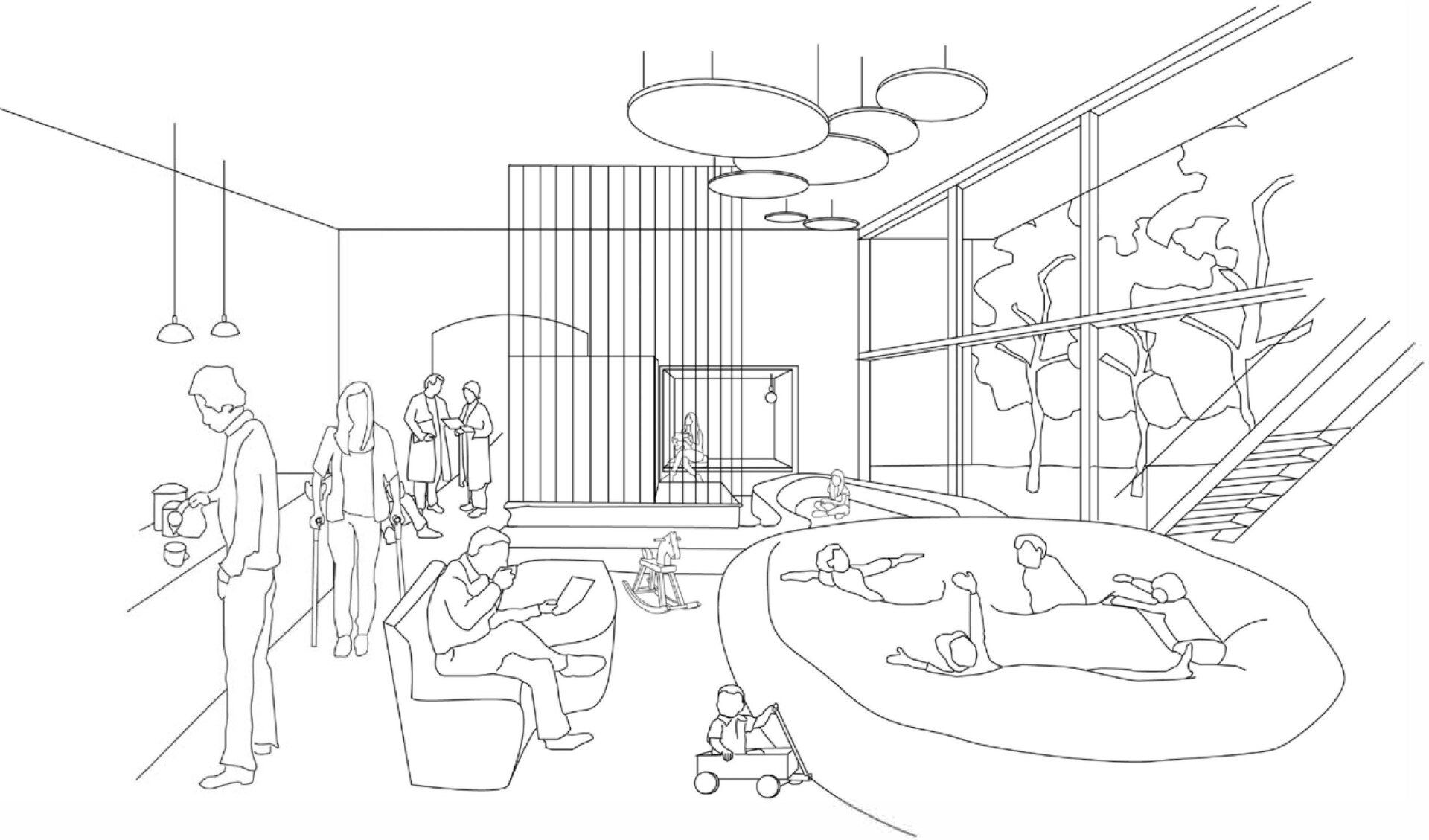 Die Idee der Geburt steht in Verbindung mit dem Zutrauen an eine Zukunft. Das Eltern-Kind-Zentrum und alle in dem Zusammenhang stehenden Fachabteilungen in Haus A werden so gestaltet, dass eine anregende und freundliche Atmosphäre ein leistungsförderndes Milieu für Körper und Seele schafft.
