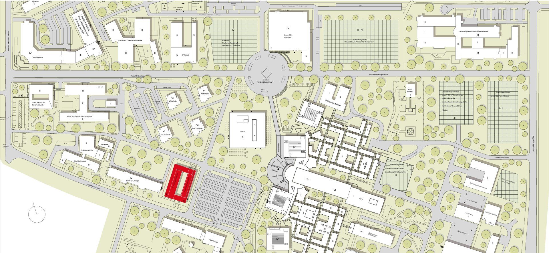 Der Neubau des Forschungscluster IIIa besetzt das vorgegebene Baufeld zwischen dem Forschungscluster III und dem Gebäude der ehemaligen Urologie und vollendet das 2011 fertiggestellte Bauwerk. Die Adresse bildet nach wie vor der Haupteingang des Bestandsgebäudes Forschungsclusters III, der Neubau hält sich gestalterisch zurück und fügt sich zu einem Gesamtbaukörper.