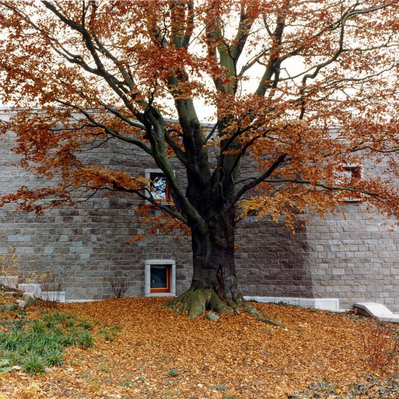 Ergebnis ist ein terrassierter Baukörper, der die örtliche Topographie des Bauplatzes aufnimmt und mit seinen begrünten Dachflächen, der künstlich gestalteten Vegetation des Patientengartens und der Integration des vorhandenen Baumbestandes Teil der Landschaft wird.