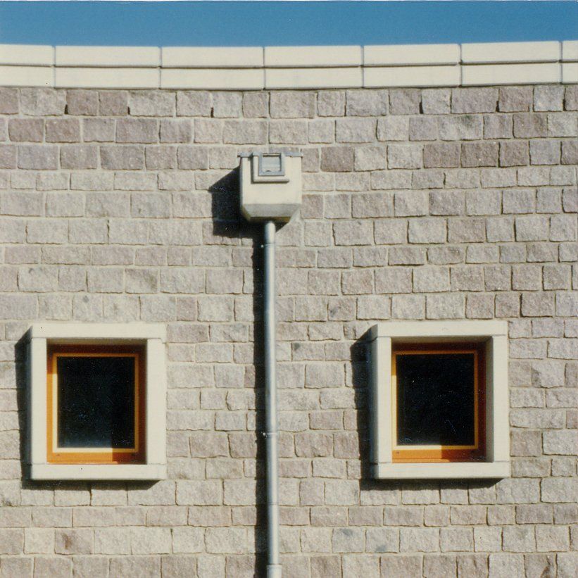 Die Wahl des Fassadenmaterials nimmt Bezug auf die von der Brunsvik hochlaufenden Natursteinstützmauern.