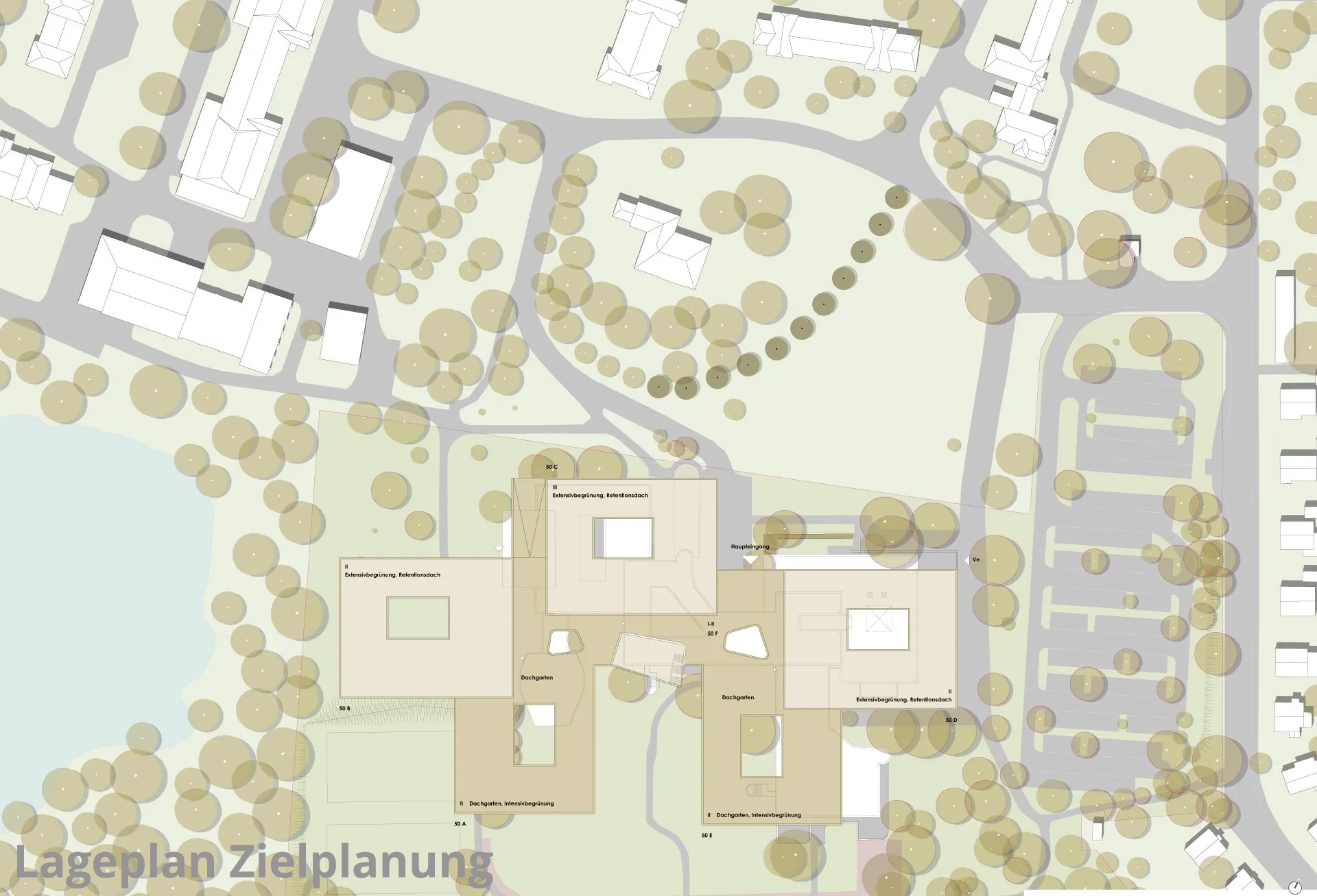 Die Zielplanung für den Ersatzneubau der Erwachsenenpsychiatrie sieht den Neubau von vier Pflegestationen auf der Westseite des Altbaus, sowie den sukzessiven Abbruch des Bestandgebäudes und das Weiterführen des Neubaus in Teilabschnitten in östliche Richtung vor. Im finalen Zustand wird sich das neue Gebäudeensemble pavillonartig in die Landschaft einfügen.
