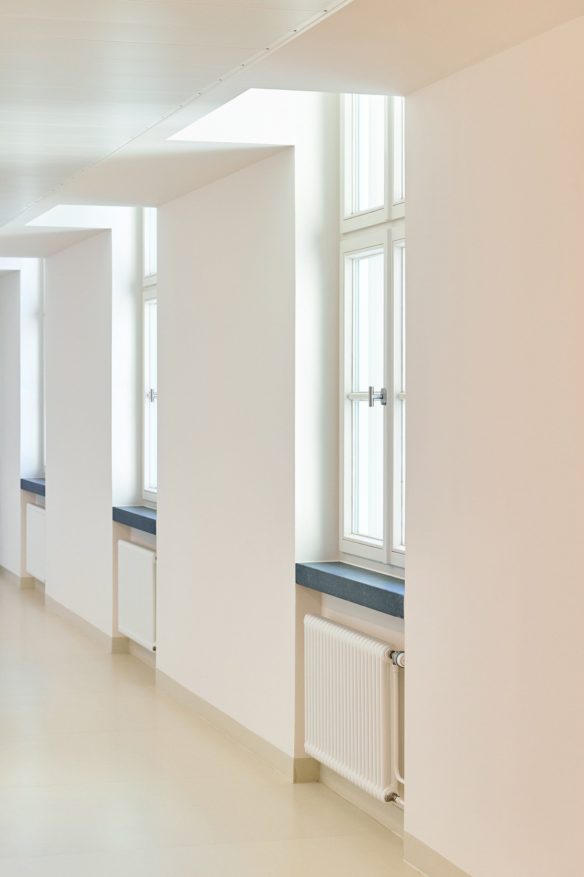 Zunächst mussten zur Freimachung des Baufeldes die Fachuntersuchungsstellen FU Augen und die Endoskopie an anderer Stelle (im denkmalgeschützten Ensemble, dem sogenannten Südflügel Ost und West) neu geschaffen werden.
