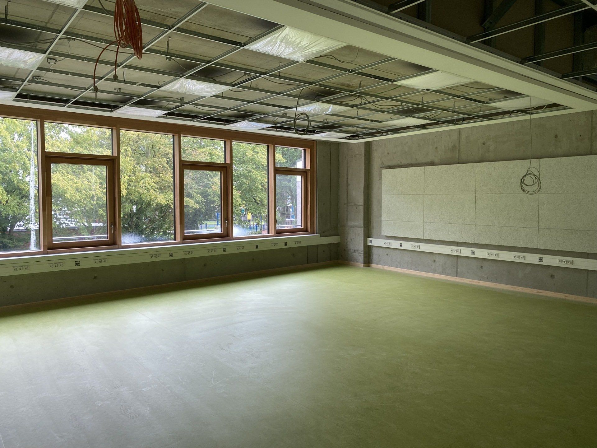Impressionen von der Baustelle lassen die Qualitäten des Neubaus erkennen, der als "Schule für Alle" ein integratives Konzept nicht nur für Kinder mit verschiedenen Möglichkeiten, sondern auch über den Schulbetrieb hinaus Nutzungsmöglichkeiten für die Bewohner des Quartierts vorsieht.