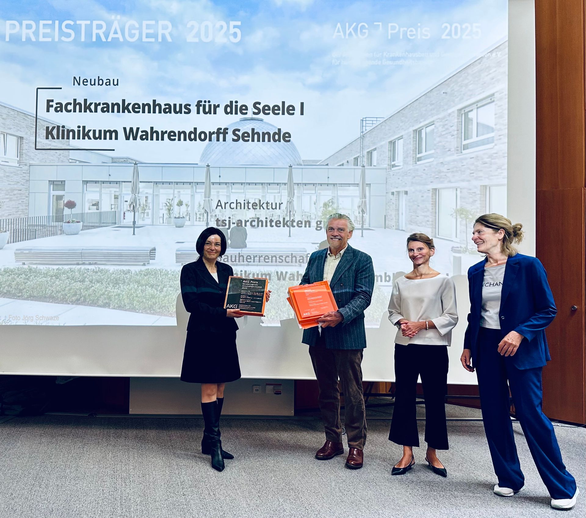 Der eigentliche Höhepunkt des Kongresses war für uns die Verleihung des großen AKG-Preises 2025 für unser Projekt Fachkrankenhaus für die Seele / Klinikum Wahrendorff Sehnde.